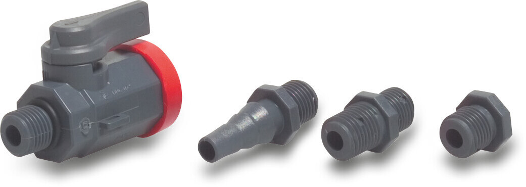 Praher Ball valve PVC-U 1/4" female thread x male thread 10bar grey