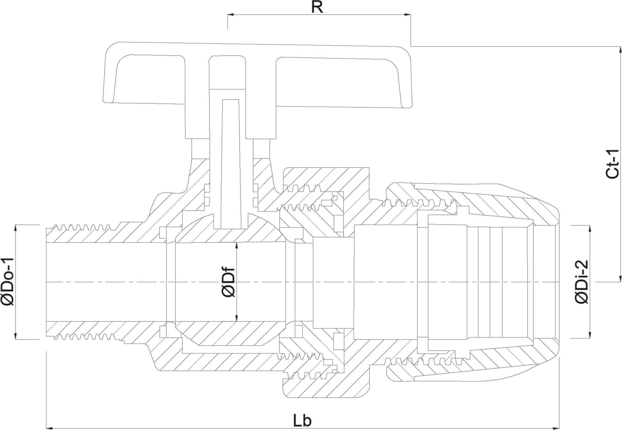 Profec Ball valve PP 63 mm x 2" compression x male thread 10bar black type Safe 502