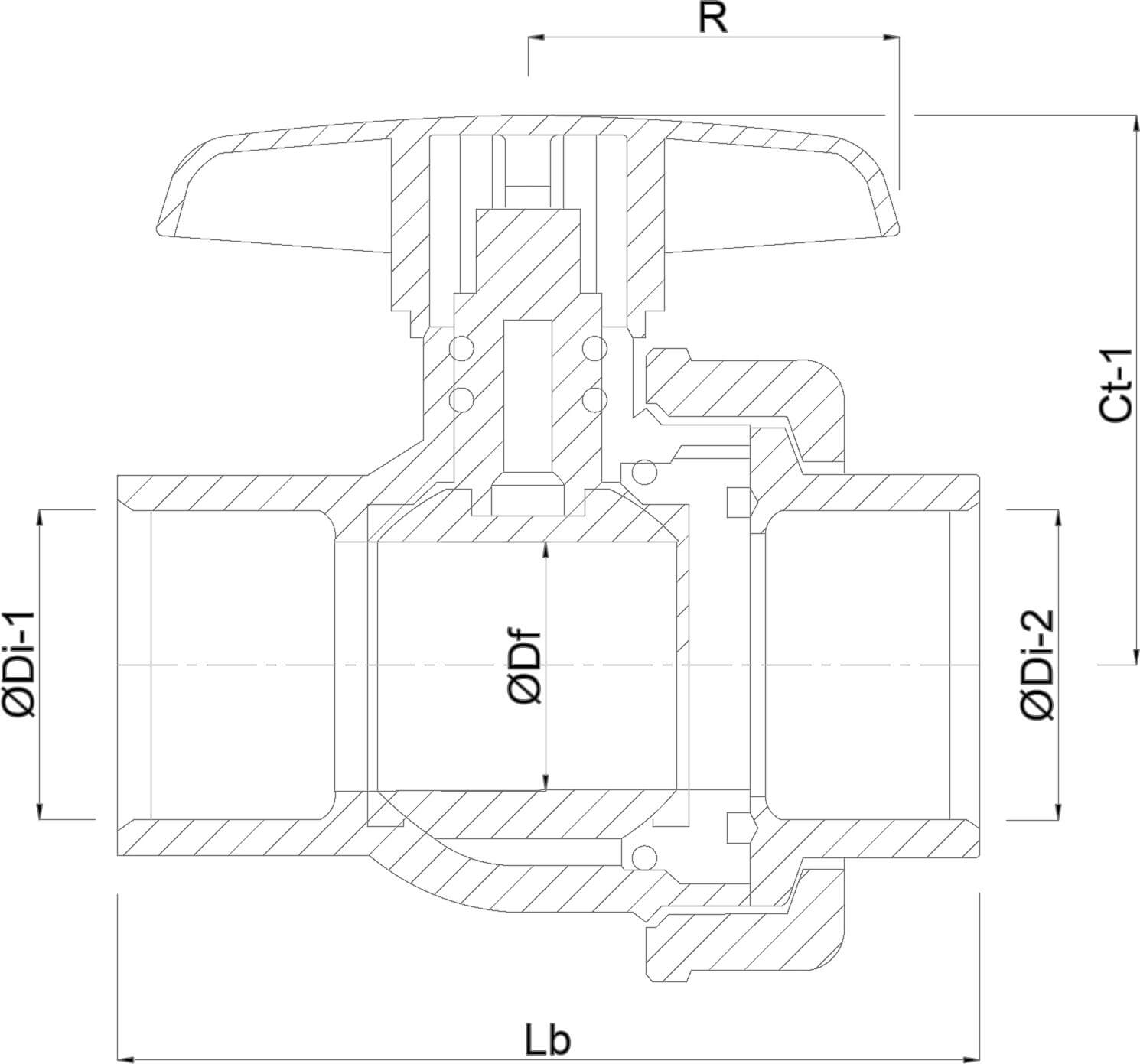 The PVC-U made Profec Ball valve with single union, type Safe 550 has a female thread connection connection and a maximum pressure of 16 bar. Profec Safe series ball valves are are equipped with secure locked ball. Seal material Hytrel/EPDM. The valves are available in a wide range of sizes.